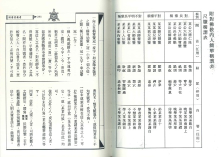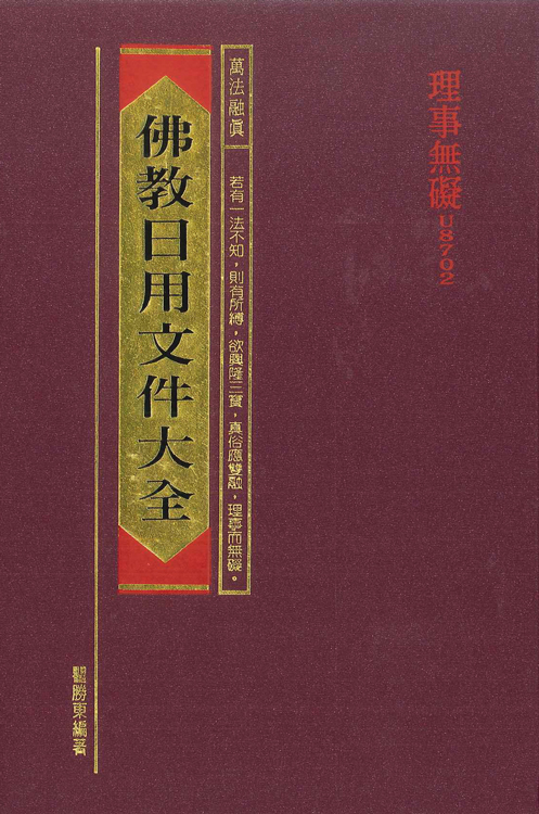 本著總目有文詞類,如募捐,勸修,通啟,超薦疏,普佛疏,開光疏,水陸齋天疏,講經疏,大齋儀疏…等等及落成頌詞,禮慶頌詞,祝壽詞,輓詞…等等。公文類有廟產保護文,與政府書函,指導文…等等及組識綱要,章程,條例,約法…等等。聯語類有賀任聯,祝壽聯,輓聯 (出家眾與男女居士),寺院聯,雜類…等等。幛額類有團體開幕,祝壽,祭奠,廨署,廟宇,市塵…等等。尺牘類有稟師組書,致師兄,受業師書,贈禮信,慶祝信,唁慰信,問候,請約,雜類,討論…等等。禮節類有開光,慶生,供文疏,住持進退與圓寂後各種法事。帖式類有護法,待齋,主七,請尊長,請講經,落成,佛誕…等等及契據之房據,房契,田契…等等。雜錄類有說,開示,法器說明,日用名詞,世俗交際,普通交際,特別交際,交際手續,口才,交際事項。