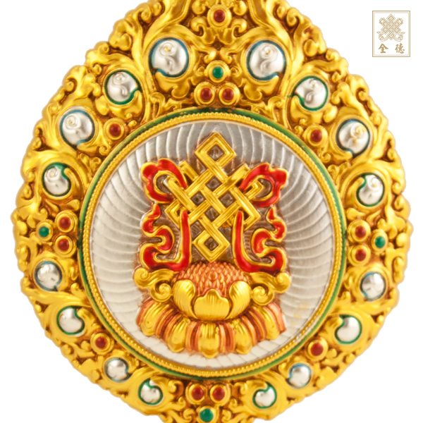 【吉祥結】又稱無盡意結,有連綿不斷之意。纏繞的線條代表一切現象的縱橫交錯,以及因緣之合合。由於一切現象都是依緣而生,因此常用在禮物或卡片上,象徵結緣以及吉祥之意;由於它無始亦無終,也象徵佛陀無邊的教法,以及無盡究竟的佛性。