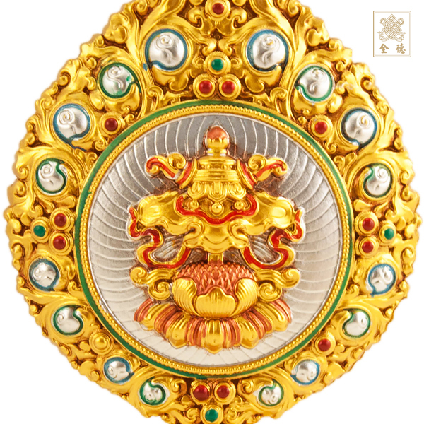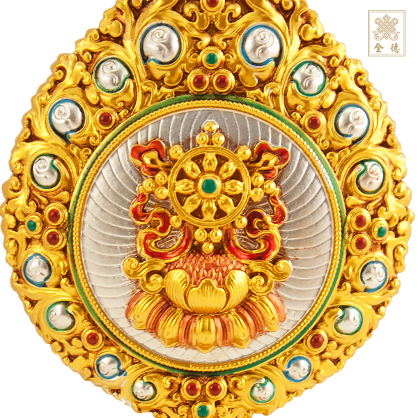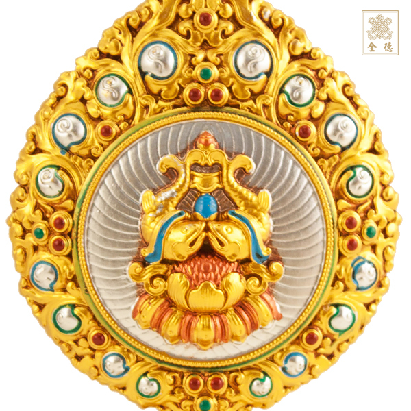 【金魚】以其自由遊於水中,象徵超越世間、自由闊達、得解脫的修行者。雙魚則表雙運解脫的境地,也象徵佛之慧眼。