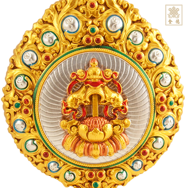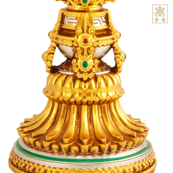 【勝幢】它象徵佛陀教法的尊勝,以及消除無明的智慧,可使眾生淨除一切業障,獲得快樂的勝利。它同時也代表希望獲得恆久不變之安樂的一種祈望。