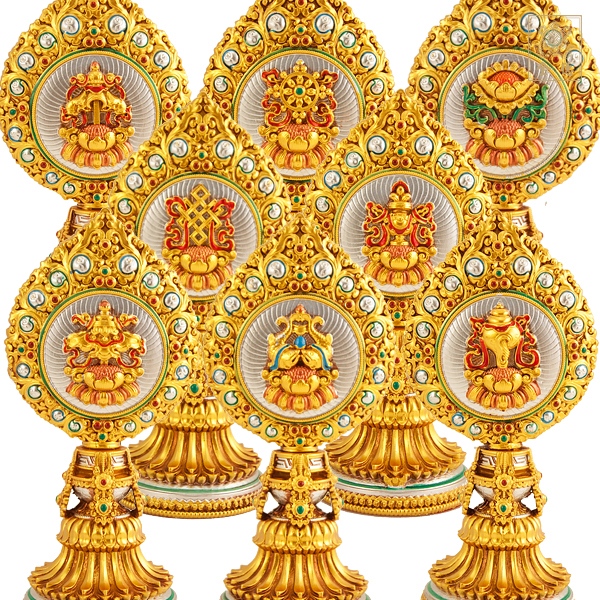 修行人為聚集福慧二資糧,需以六度萬行上供下施,增加福德、滌清罪障。八吉祥象徵宇宙所有奇珍異寶之總聚,以此供養三寶、三根本,並累積自身資糧。八吉祥也同時代表佛之一切功德事業。