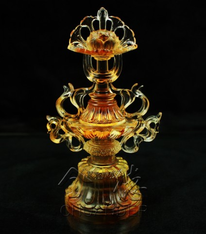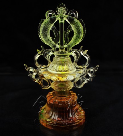 【勝幢】它象徵佛陀教法的尊勝,以及消除無明的智慧,可使眾生淨除一切業障,獲得快樂的勝利。它同時也代表希望獲得恆久不變之安樂的一種祈望。