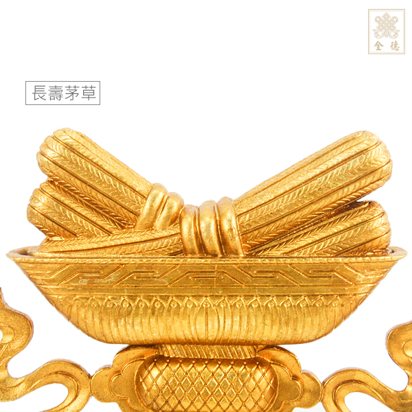 長壽茅草,又稱枯夏草、百節草,在印度是一種生命力極強的植物,即使被砍斷或曬乾,一經遇水,也會從其無數的根節再發出新芽。因此,它被視為一種長壽或祈求長壽的象徵。