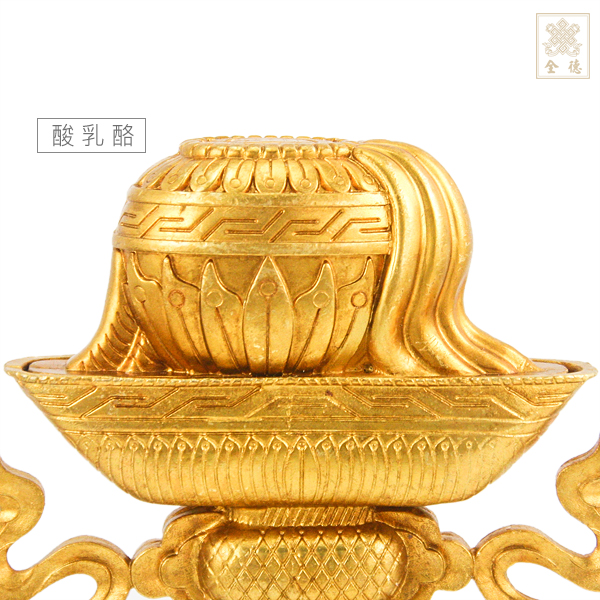 酸乳酪是消除煩惱惡業的一種表徵。酸乳酪之製作過程是經由牛隻吸取植物精華而後榨取牛乳得來,再經過煮沸、凝固等手續而成。因此,它也像人一樣,本質清明,具輪涅之根本,但要經過法道修行的磨練,始能開悟成佛。