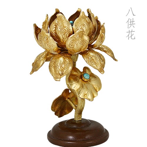 本八供組合包含:供杯2個、油燈杯、八供花、八供多瑪、檀香油、供香塔、法螺各1個