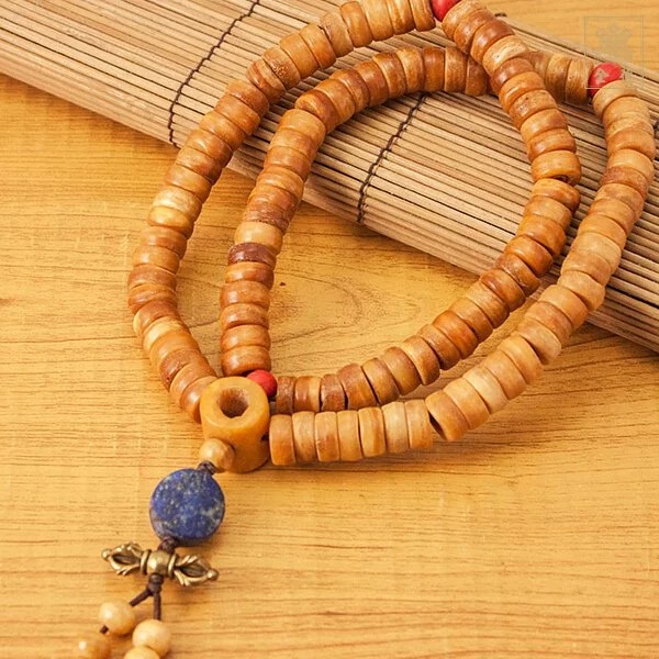 牛骨扁珠直徑約10mm、寬約5mm,全長約38cm,由於丈量方式的不同,因此尺寸可能有2%以內之誤差。