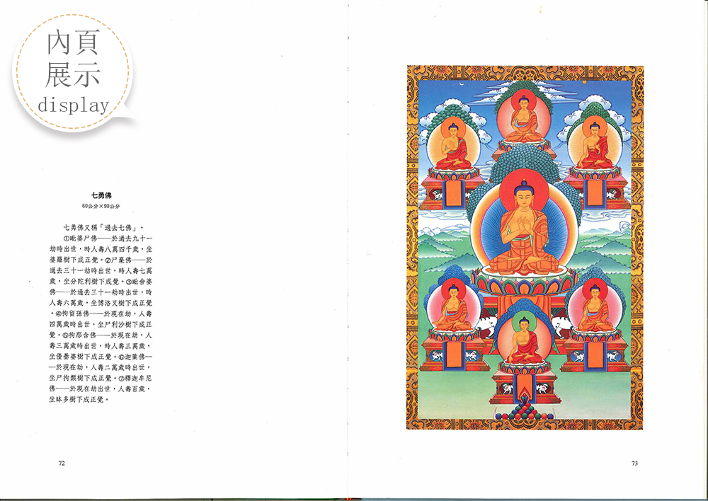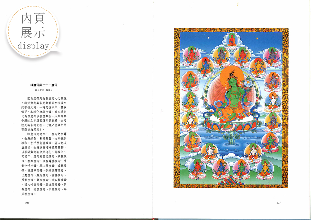本書為策旺尼瑪與鄔堅拉頌二位兄弟喇嘛之作品集與唐卡介紹。二位喇嘛自幼即從師學藝,其畫工巧奪、造詣高妙,皆可從本畫冊睽之一二。二兄弟更特別接受中國康定州文化局之邀請繪製大幅唐卡,作品亦在各國展出,冀以期許唐卡之普世。