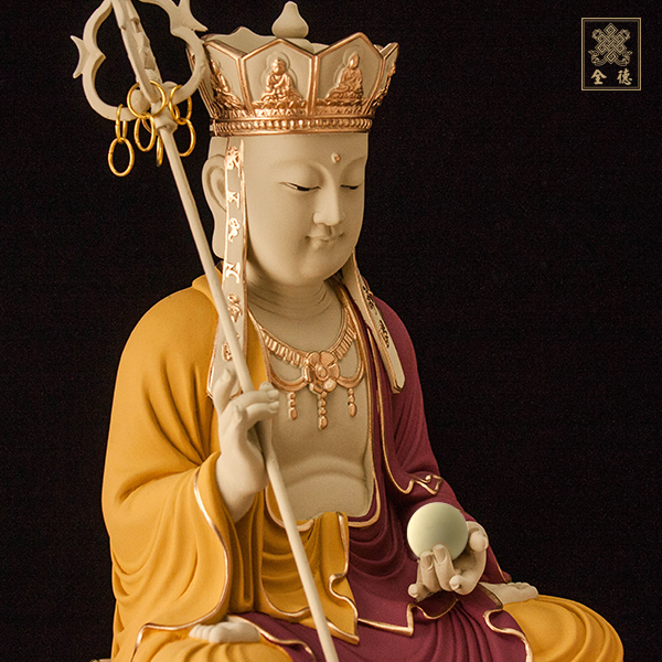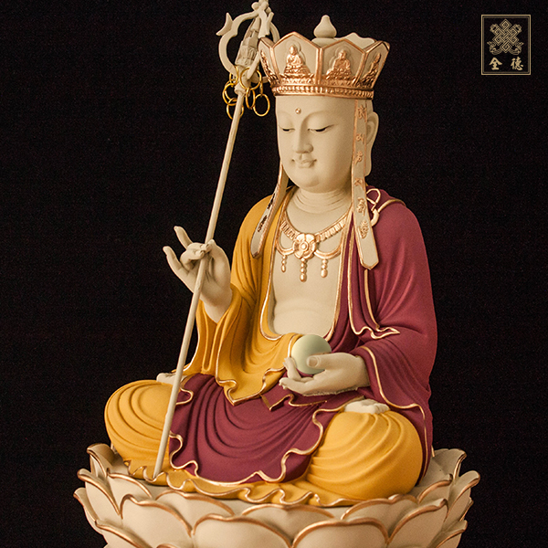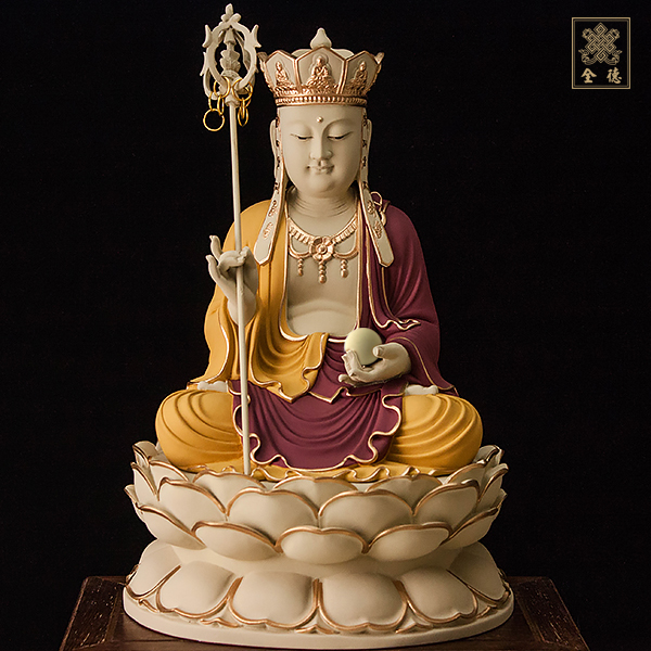 地藏坐姿-蓮花座-石金-7寸5(附木座)