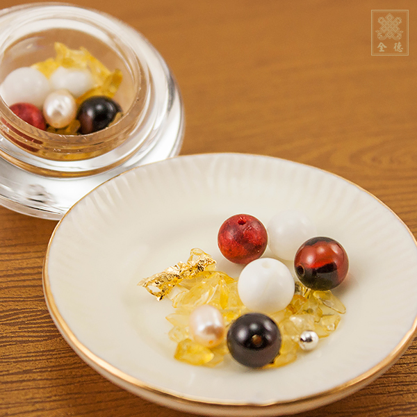 含佛教七寶(金、銀、琉璃、硨磲、珍珠、琥珀、珊瑚)