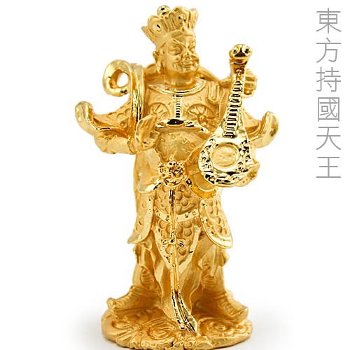 東方持國天王,「持國」意為慈悲為懷,保護眾生,護持國土,故名持國天王。住須彌山白銀埵,身為白色,穿胄甲,手持琵琶,是主樂神,表明他要用音樂來使眾生皈依佛教,他負責守護東勝神州,是『二十諸天』中的第四天王。