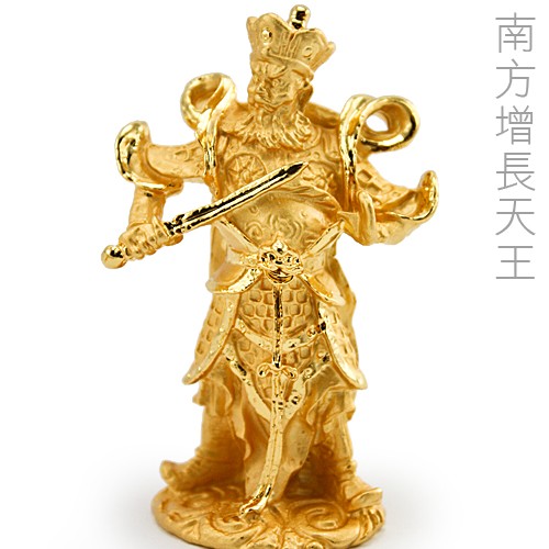 南方增長天王,「增長」意為能傳令眾生,增長善根,護持佛法,故名增長天王。住須彌山琉璃埵,身為青色,穿甲冑,手握寶劍,為的是保護佛法不受侵犯,他負責守護南瞻部洲,是『二十諸天』中的第五天王。