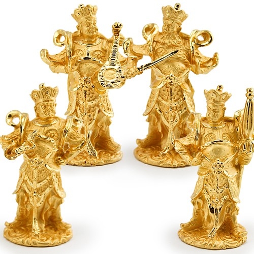 四大天王是佛教著名守護神,能保護天下太平,安樂利益民生。各持一物,以分別譬喻「風、調、雨、順」之意,手持刀劍,比喻為「風」;手彈琵琶,有「調」順之意;手握傘蓋,比喻為「雨」;手擒龍者,喻為「順」,象徵「五榖豐收」、「天下太平」。