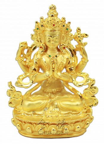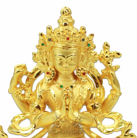 四臂觀音與千手千眼觀音均為觀世音菩薩的其中一種應化身,身著綢緞及纓絡(莊嚴報身相);