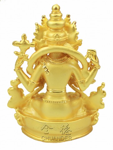 白色的身體代表清淨無瑕的身言意、前兩臂合掌當胸並持如意寶珠、後兩臂高舉至肩,