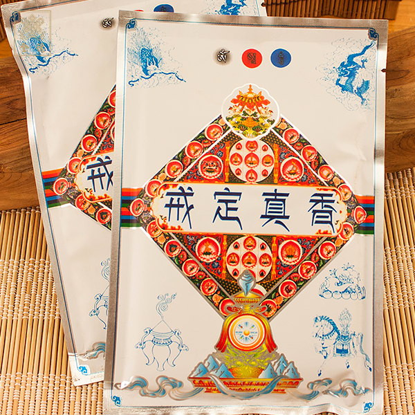 本〝戒定真香〞以五香(旃檀香、沉水香、丁香、鬱金香、龍腦香)加以五寶、五榖、乳香、沒藥、安息香、降真香及成就諸真言所備辦的紫檀香、娑羅香、天木香等上供殊勝之香藥,和合藏地諸多寺院灌頂法會之聖物虔誠而製。芳香融合,薰燃此香或懷持能提神醒腦、令身心芳潔、增六根敏銳、氣脈暢通、除穢除昏,易於修行。