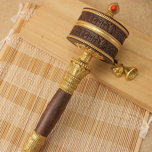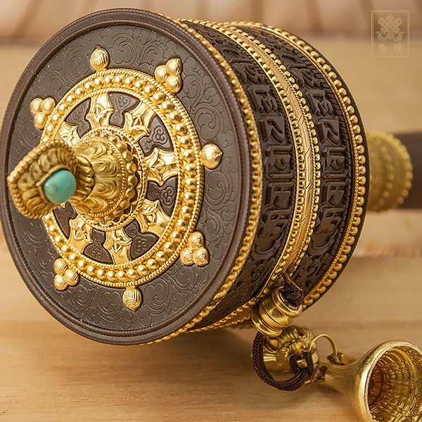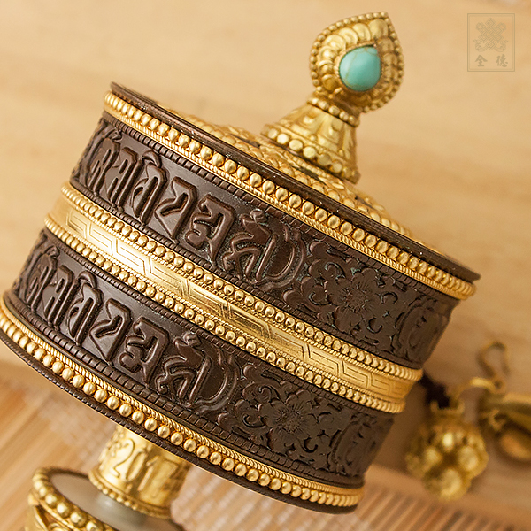 手轉經輪-六字咒-大-仿古色+黑檀手柄