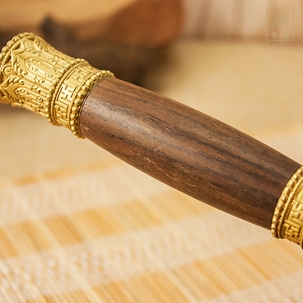 手轉經輪-蓮師咒-紫銅+黑檀木柄