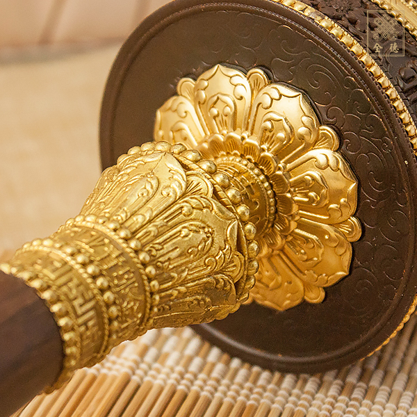 手轉經輪-六字咒-大-紅銅色+黑檀手柄