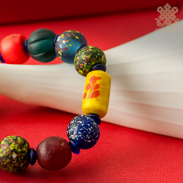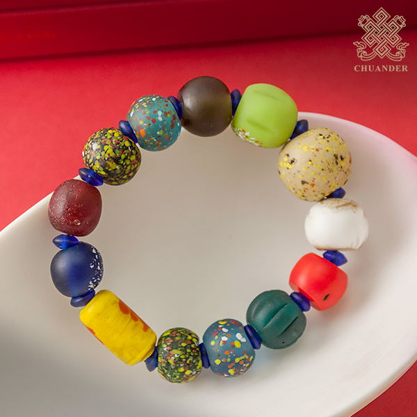 琉璃珠大小不一直徑約12~18mm,手圍直徑約5cm(彈性線),由於丈量方式的不同,因此尺寸可能有2%以內之誤差。