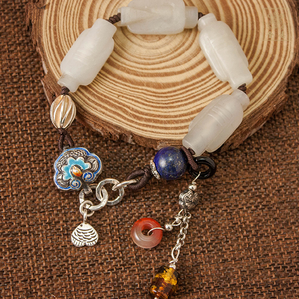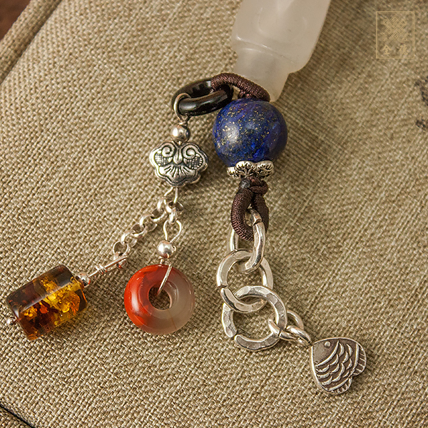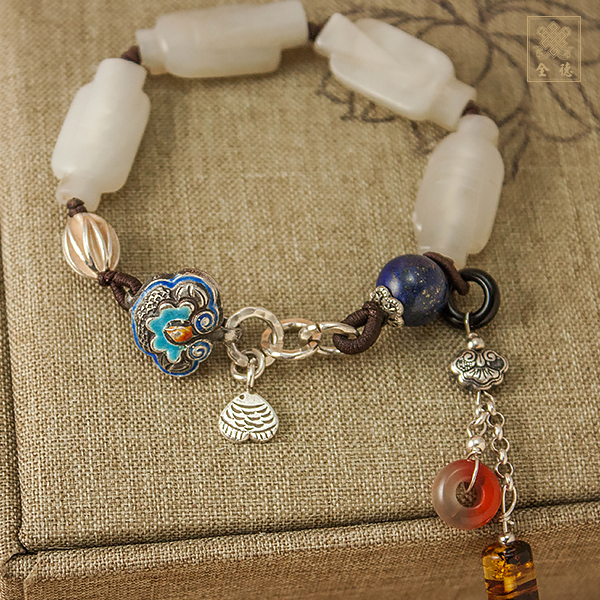 和闐白玉、燒藍純銀、冰漂南紅、青金石、琥珀
