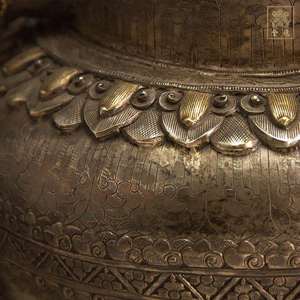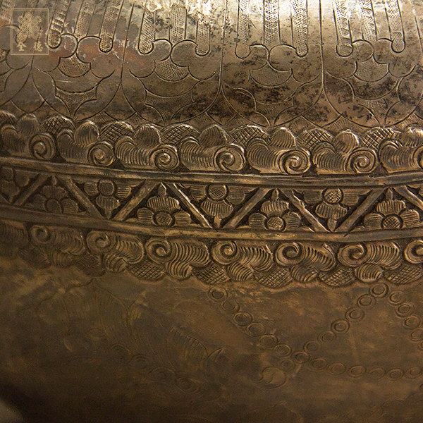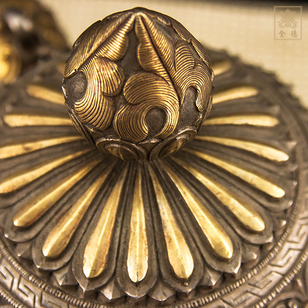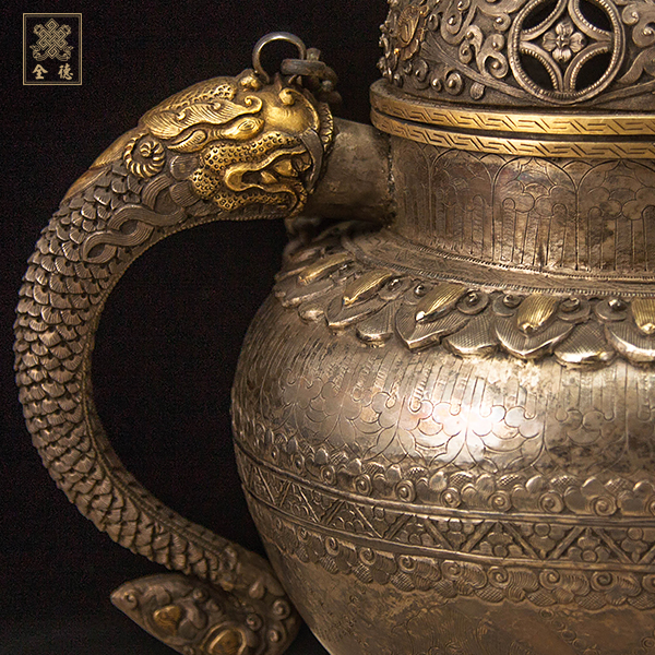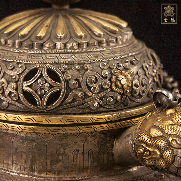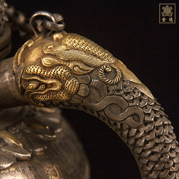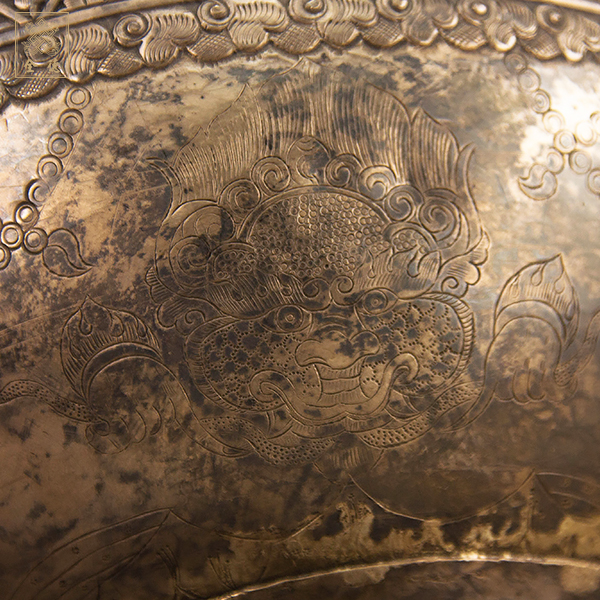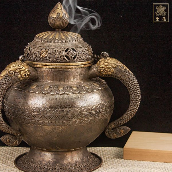 爐耳為精雕龍身,爐面刻有神獸饕餮