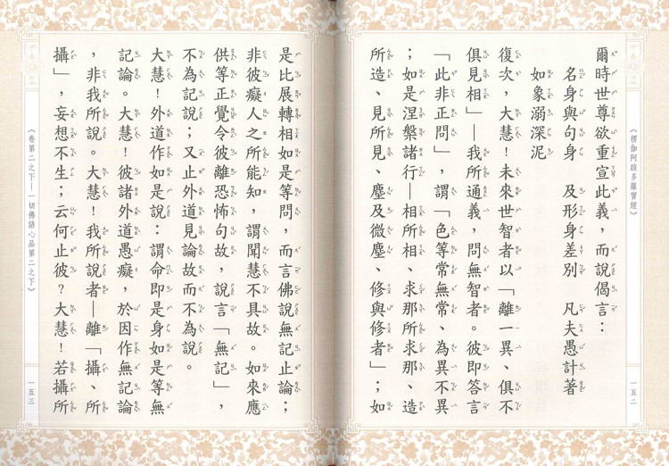 楞伽經,梵語漢譯為《楞伽阿跋多羅寶經》、《入楞伽經》、《大乘入楞伽經》。本經說明清淨心、如來藏及阿賴耶識之教義,是禪宗以及法相宗(唯識宗)的重要經典之一。本經的主要內容,是五法、三自性、八識和二種無我。五法是指名、相、妄想、正智、如如;三自性是緣起自性(依他起性)、妄想自性(遍計所執性)和成自性(圓成實性);八識是眼耳鼻舌身意六識,加上末那識和阿賴耶識;二種無我是人無我和法無我。