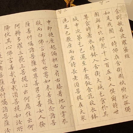 ★ 清道光年間「兩淮鹽運使」但明倫,鎮公之餘以其優美工整的館閣體鈔錄四部佛教經典,並寫下三部經典集解,深具藝術收藏價值。