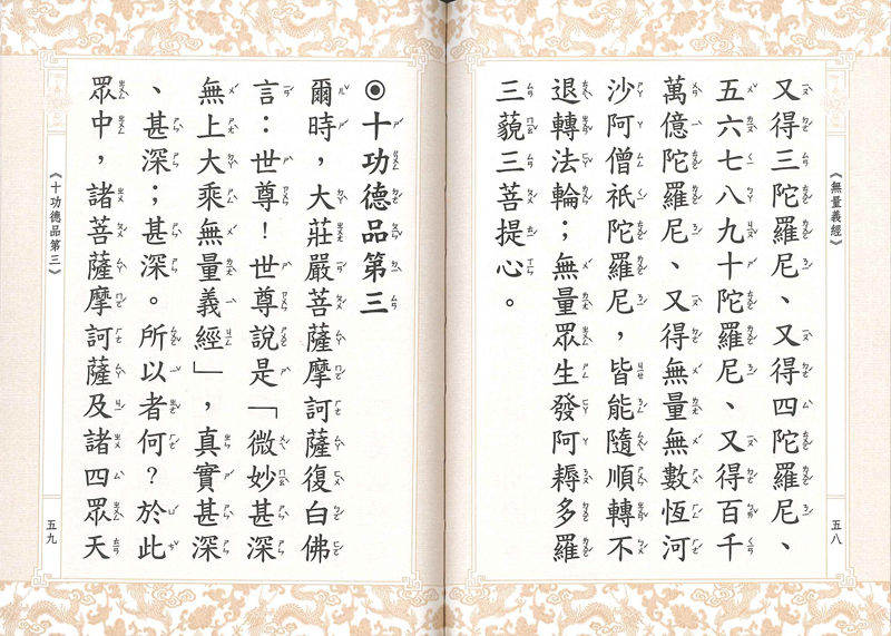 《無量義經》,梵名amitarthasutra,全一卷,分三品,由中天竺沙門曇摩伽陀耶舍於建元三年傳入中國,與《妙法蓮華經》、《觀普賢菩薩行法經》合稱“法華三部經”。