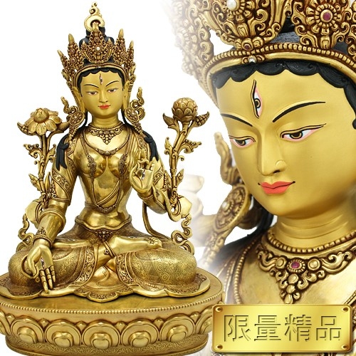 白度母又稱長壽度母,據傳為觀世音左眼悲淚所化,因於臉上三眼、雙手、雙腳各具一眼,故稱「七眼佛母」。