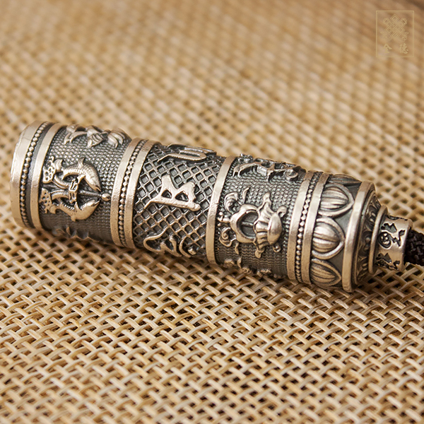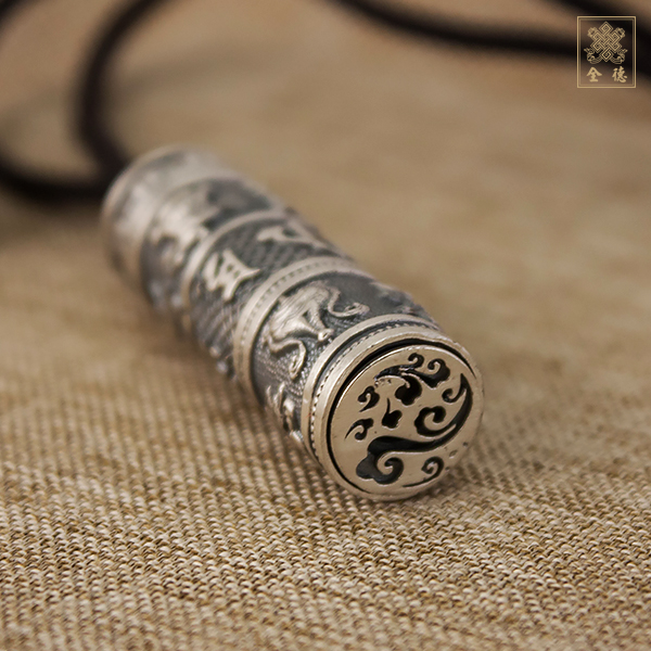 純銀項墜-彌陀小佛盒+六字八吉祥-筒型
