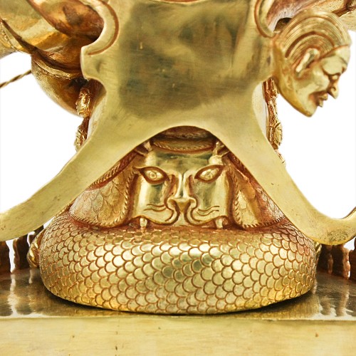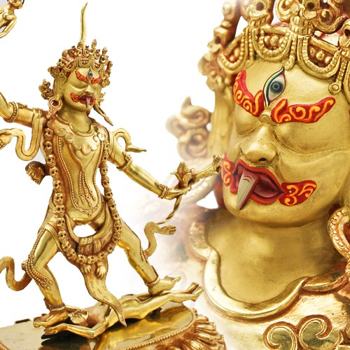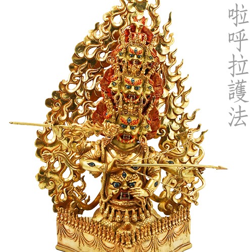 喇呼拉又名毗紐天,摧敵大遍入護法。為金剛手菩薩所授記,護持密乘行者之大護法神。能遮止日月年令等凶曜煞神