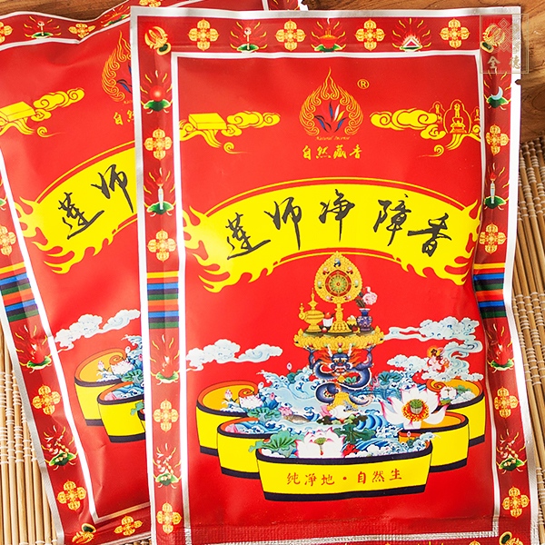 蓮師淨障香:大乘時期,蓮花生大士受命於赤松德贊鑄建桑耶寺復建復折之際,為令法藥、植物、礦物,時令焚之,以種種之法,是得眾生皆往助之,寺得以立。自此,大士所傳煙供之法以益後世。自然藏香,深入淺出,依大士傳承、諸方彼時此時囑託,所需不同增減。特備:六良藥、五香五藥、三甜三白、精選道地雪域藏藥、法藥、花瓣等四十八餘味。