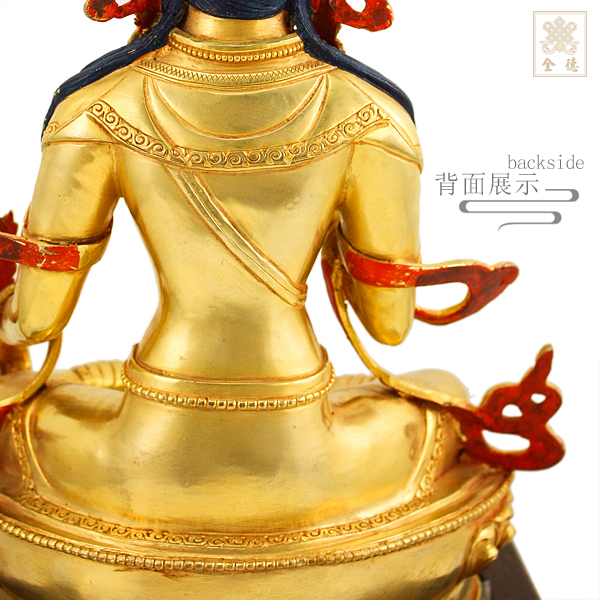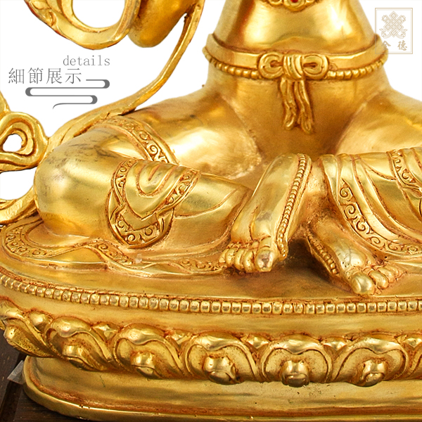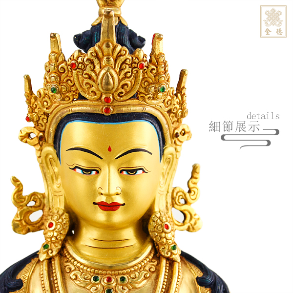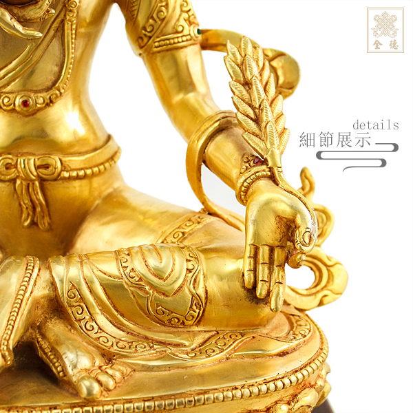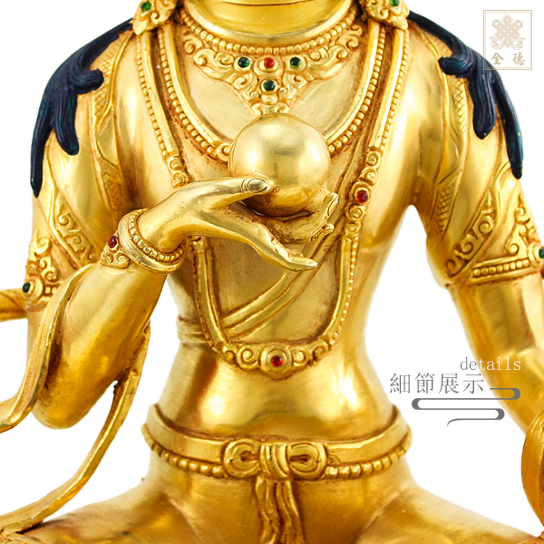 藏傳佛教的地藏菩薩造相有數種樣式。此尊地藏右手持摩尼寶珠於胸前,左手朝下拿著稻穗。摩尼寶珠象徵能滿足一切願望的如意寶。稻穗代表大地的精華,孕育萬物,表示地藏菩薩:利益安樂一切有情;令諸有情所願滿足;如同滿願如意寶,亦如深密伏藏。