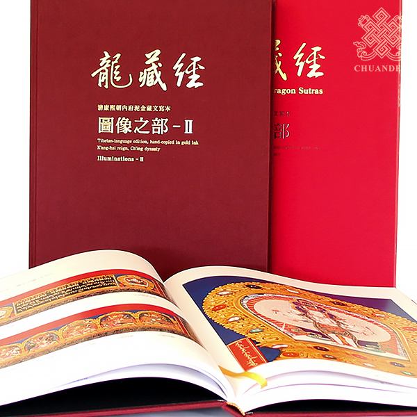圖像之部二冊是集結龍藏經108函上下護經板,每函繪有7尊造型各異的諸佛菩薩護法等尊像,上經板有二尊菩薩,下經板有五尊護法,全藏108函,共756尊菩薩護法。圖像之部中所有佛像,原件皆以雕花銅胎鎏金半滿瓔珞和歡門做搭飾,並鑲有各式珠寶。