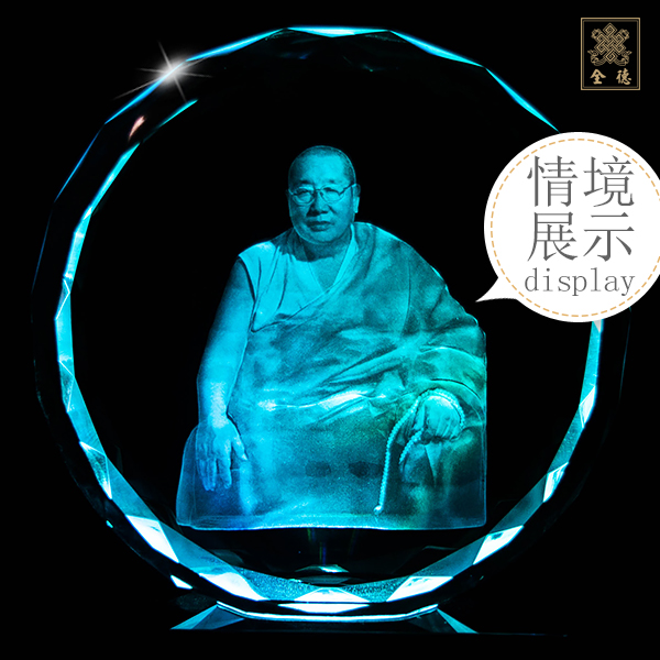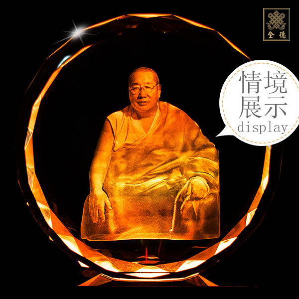 薩迦法王-水晶立體內雕-圓形切角-含燈座