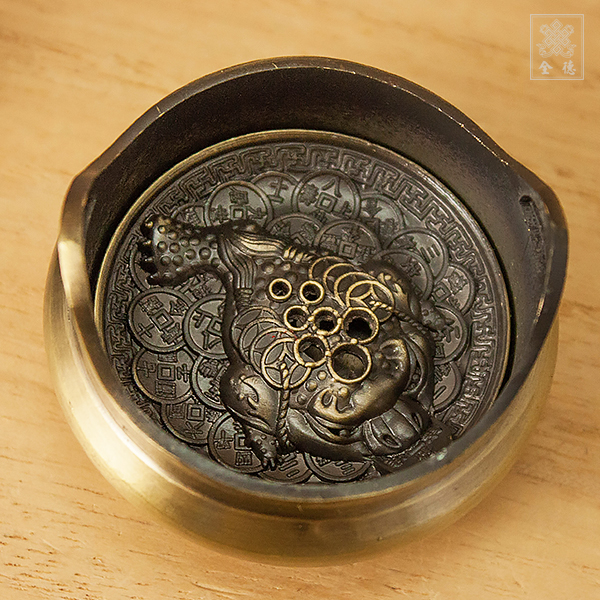 「蟾蜍」,除了是我們較廣為人知的「癩蛤蟆」之外,亦有招財,避邪,安家鎮宅保平安等多種含意。此蟾蜍香爐為銅合金製成,小巧可愛,方便攜帶,且不易褪色。可將此香爐點燃線香之後,安放在收銀櫃檯、家中玄關、客廳財位,及生意場所等,即可帶來招財,避邪等多種效果