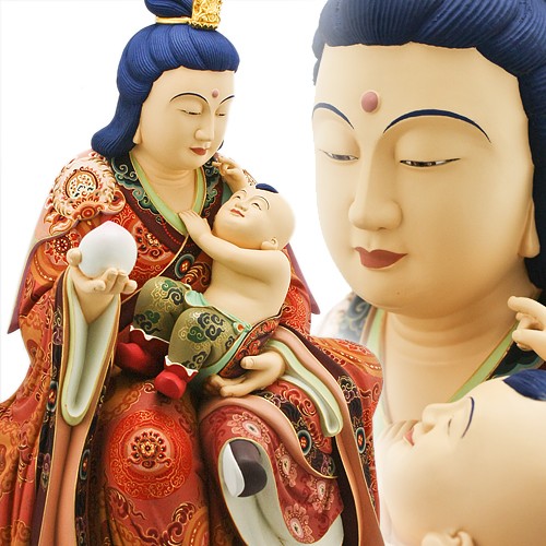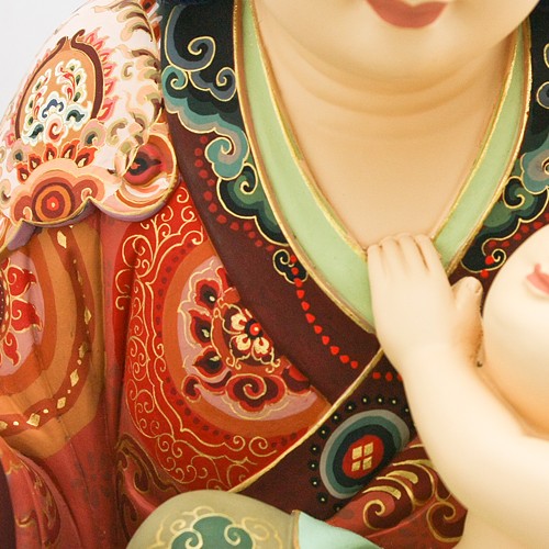 送子觀音未見於古佛經,民間流傳的三十三觀音之中,亦無此尊觀音的名號。然而,中國民間最熟悉的觀音造像,莫過於送子觀音。這是一尊婦女相觀音,抱著個小男孩,中國人深受「不孝有三,無後為大」的思想影響,因此祂深受社會各階層普遍歡迎。送子觀音是中國漢化佛教創造出來的一尊菩薩,也可以說,此尊觀音是道地的中國民間觀音。