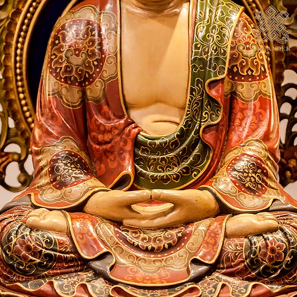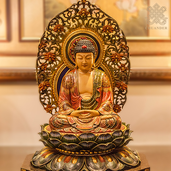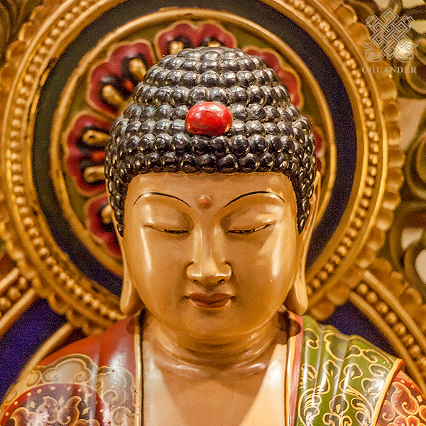 釋迦佛-樟木古彩-背光+底座