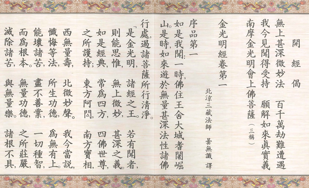 《金光明經》是古代絲綢之路上各民族最推崇的經典之一,並與《法華經》、《仁王經》同為鎮護國家之三部經。若誦讀《金光明經》,國家皆可獲得四天王之守護。