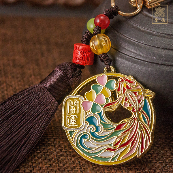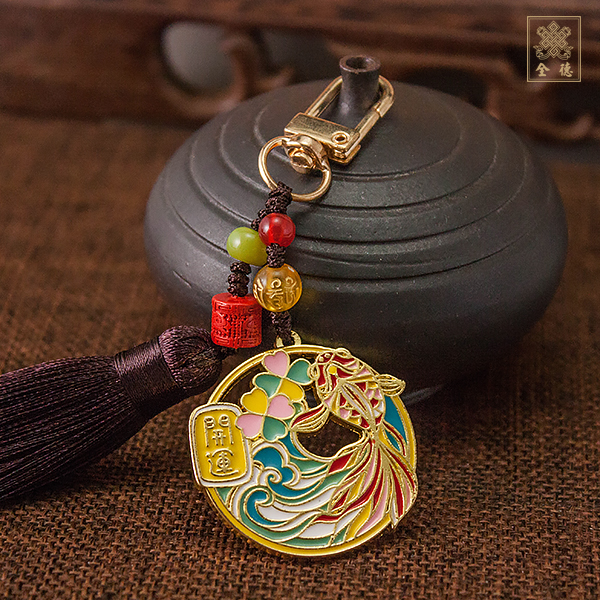 鑰匙圈-開運有餘+流蘇-單面-合金彩繪