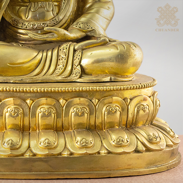 鎏金是將金和水銀依1:5比例混合成金汞齊,然後用推擠法均勻塗抹於銅器表面,