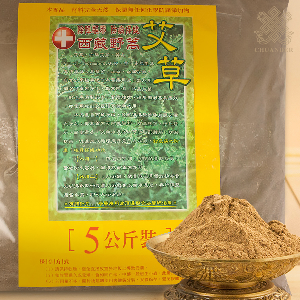 艾草亦稱艾蒿,味苦、辛,多年生草本中藥草,具抗菌、止血、止痛功能,自古以來被廣泛作為醫療用途;於外用部分可薰燃淨化,散寒除濕、防蟲抗菌,對治風濕關節炎、贅瘤腫塊、濕疹癬癩甚具療效,亦常用於針灸經絡等諸病之用。