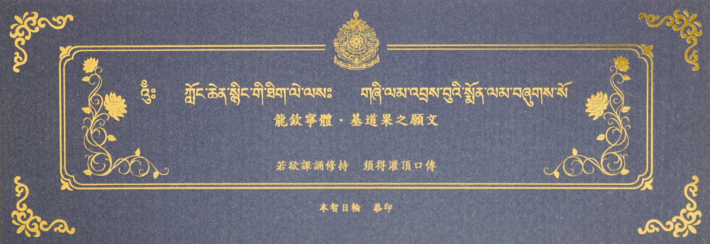 此儀軌由南開寧波尊者之主要弟子所造,乃舊譯寧瑪派奉為頂嚴之願文,當中闡述大圓滿不共之基、道、果,是所有大圓滿學人必備之願文。