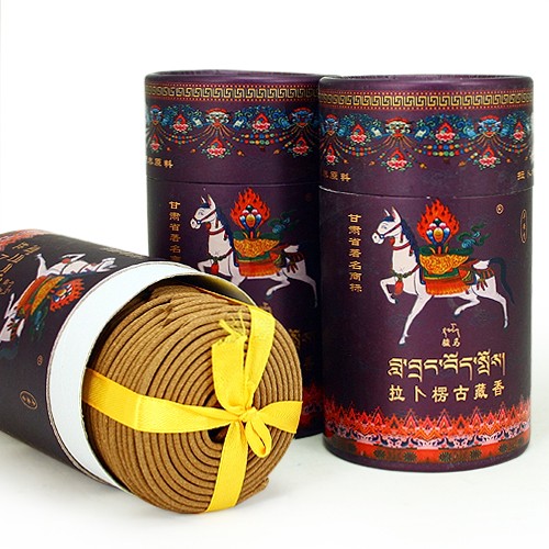 拉卜楞寺藏香,一般由藏紅花、藏寇、丁香、 檀香木、冰片、當歸、黑香、雪蓮花、沉香、甘松……等多種名貴藏藥及香草製成,純手工製作,充分地保留了藥物的天然藥性。使藏香作用發揮極致。此為供奉三寶之上等香品,有積德辟邪、清新空氣等效。同時有怡情養性之用,使人歡喜,是供佛、居家的必備佳品。