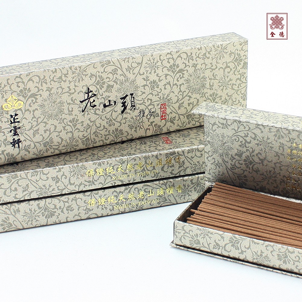 老山頭檀香,本香以頂級的印度老山頭檀香製成,材質細膩且擁有獨特尊貴的香氣,氣味清新優雅,具舒緩情緒、安定心神之功效,為大眾熏香、共佛之極品。