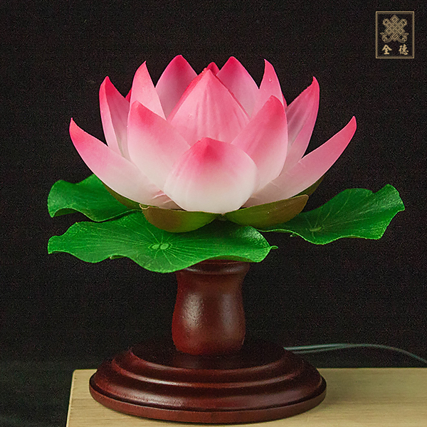 蓮花燈七彩漸變色,蓮花出污泥而不染的美德,象徵寧靜無染的超凡境界。