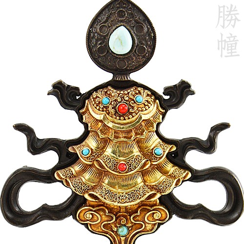 【勝幢】它象徵佛陀教法的尊勝,以及消除無明的智慧,可使眾生淨除一切業障,獲得快樂的勝利。它同時也代表希望獲得恆久不變之安樂的一種祈望。
