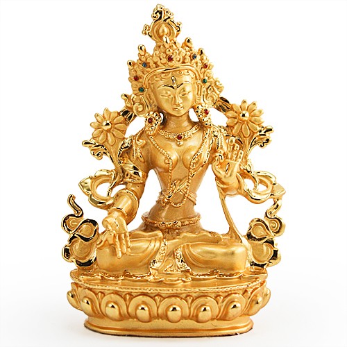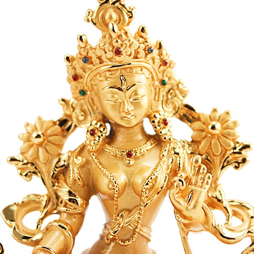 白度母又稱長壽度母,據傳為觀世音左眼悲淚所化,因於臉上三眼、雙手、雙腳各具一眼,故稱「七眼佛母」。