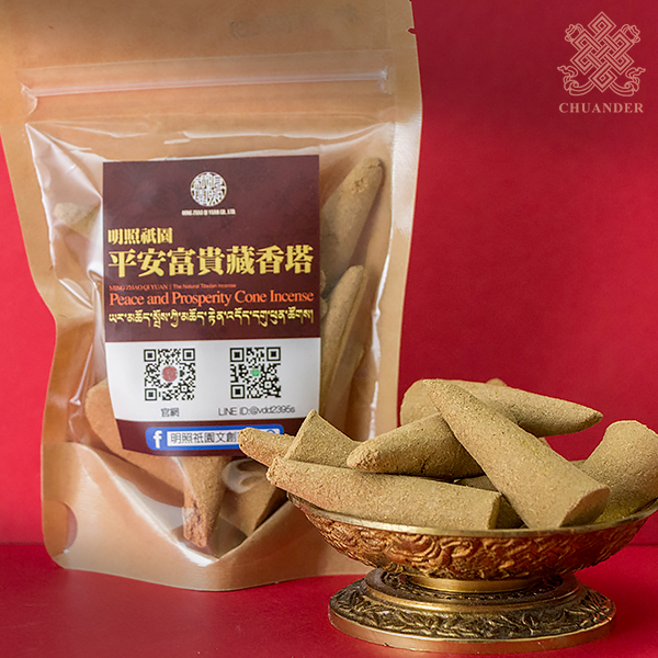 按照經典記載材料取用來自喜馬拉雅山區純淨藏松柏,馥郁華貴杜鵑花,除障艾草與頂級藥材等精萃製成,便於室內外點放供養的平安富貴天然藏香塔。