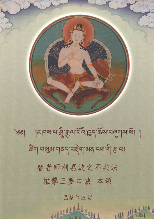 《椎擊三要》是大圓滿法在人間的第一位祖師勝喜金剛─噶拉多傑(Garab Dorje)臨終時化虹示現光蘊身於空中,向其第一心子文殊知識─妙吉祥友(Manjushrimitra)口授的並濃縮了大圓滿全部修習的最精要的「三金剛偈」,在之後的傳承又與大手印融合,兩者無分別。